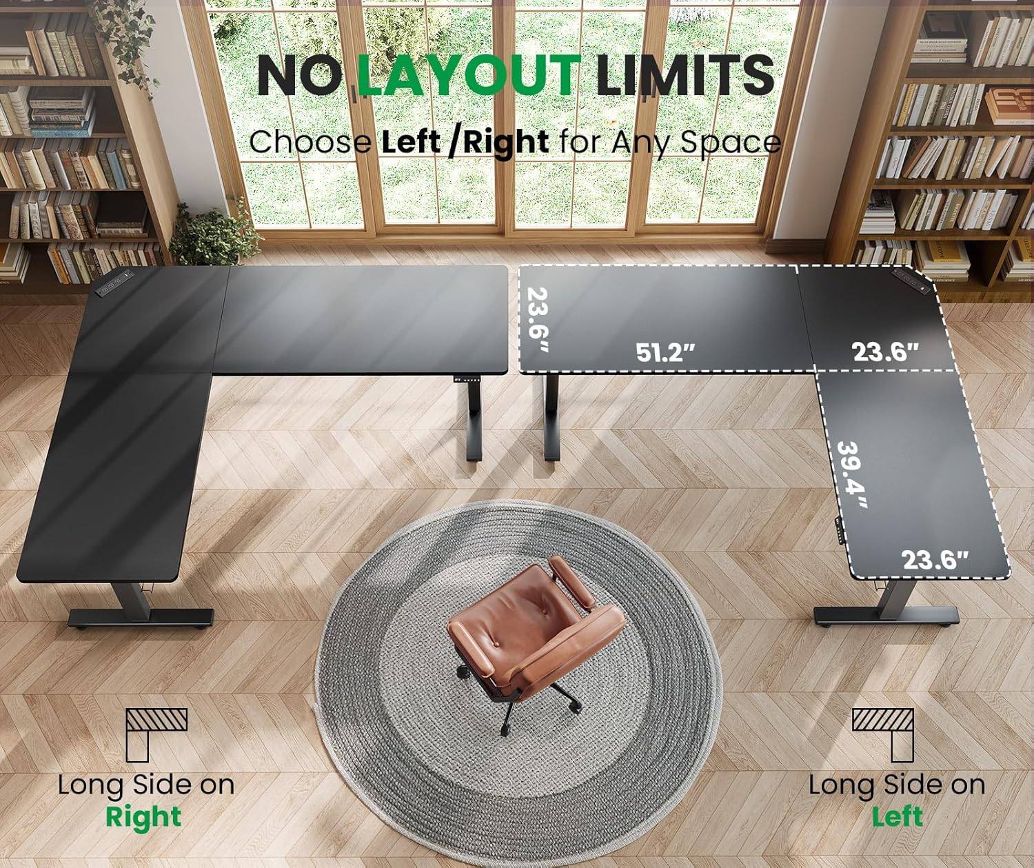 - 【45-Minute Setup & Worry-Free Warranty】With the professional step-by-step manual and dedicated toolkit ensure swift 45-minute installation. Enjoy 30-day free returns/exchanges and a 2-year warranty. For any L-shaped standing desk quality issues, please contact us via Amazon - our professional team will resolve it within 12 hours.