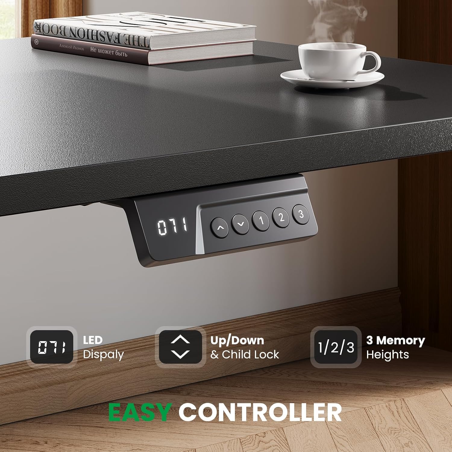 - 【Easy Controller & Height Adjustment】The L-shaped standing desk equipped with a smart memory controller, this desk allows you to preset 3 custom heights (27.5" - 45.7") for one-touch access to your ideal sitting/standing height with seamless transitions. The exclusive child safety lock prevents accidental operation. SIAGO standing desk is your ultimate solution for maintaining healthy work habits in the comfort of home.
