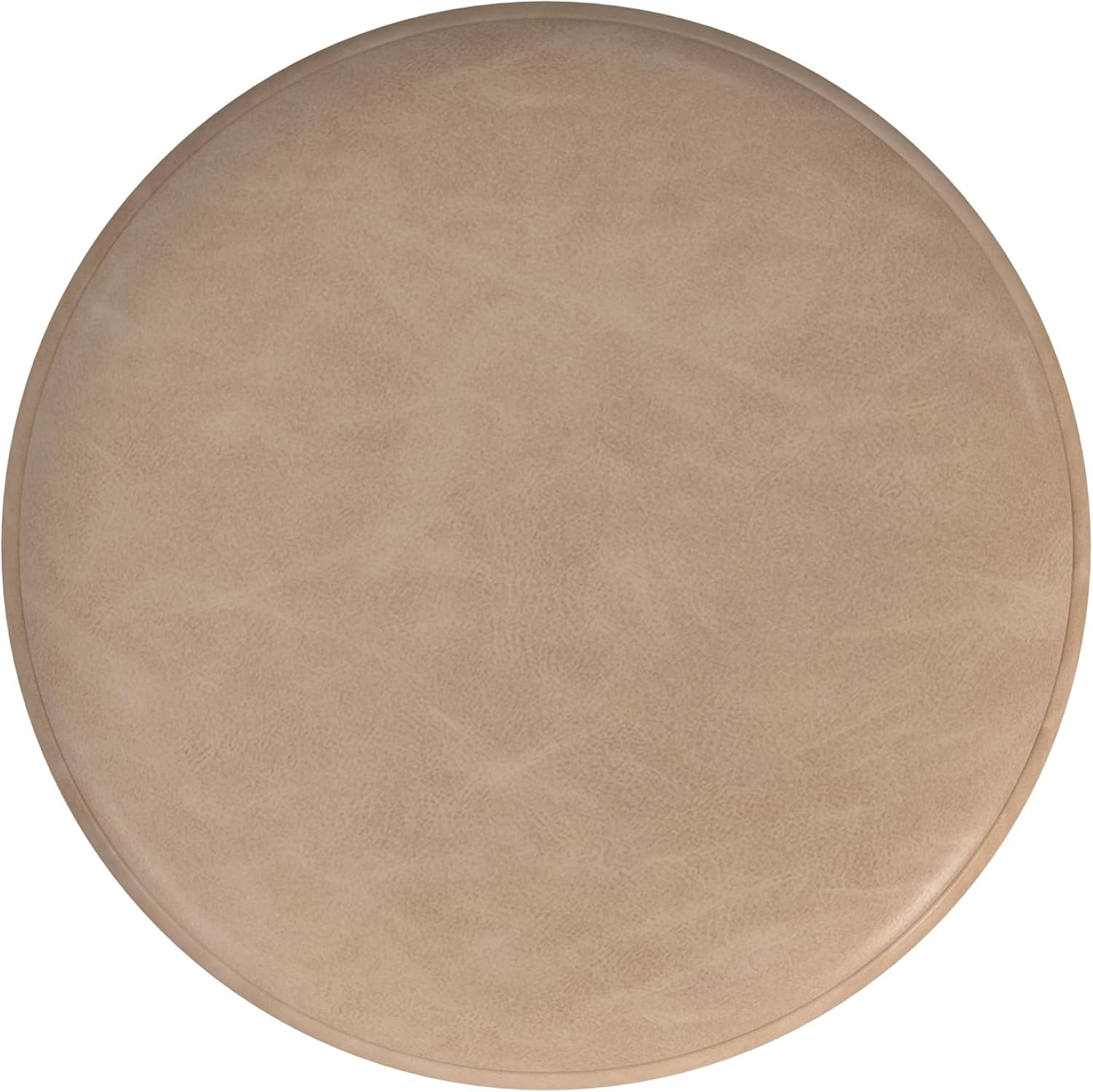 HomePop Upholstered Faux Leather Round Ottoman Home Décor|Foot Rest Ottoman- Sand Faux Leather