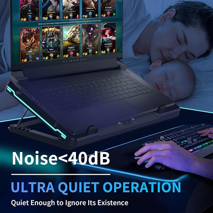 - ULTRA QUIET OPERATION ≤40DB: The laptop cooling stand designed to stay whisper-quiet even under full load. Operates at ≤40dB, ideal for late-night work, studying, or streaming without distraction