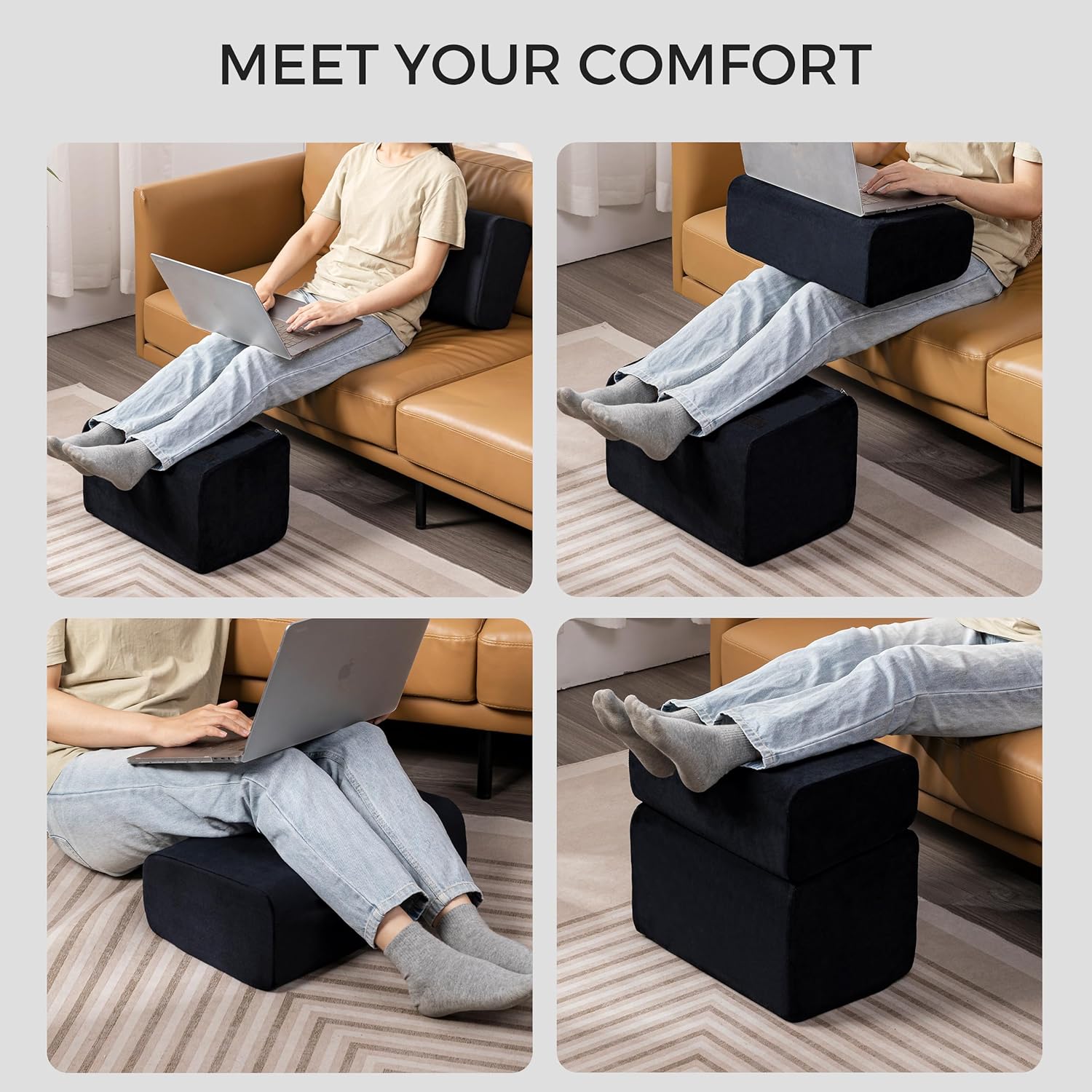 - Versatile - More than just a footrest—use it under your desk, on the sofa, in bed, or even on long flights. Functions as a footstool, leg support cushion, or lap pillow. Lightweight and travel-ready for comfort wherever life takes you.