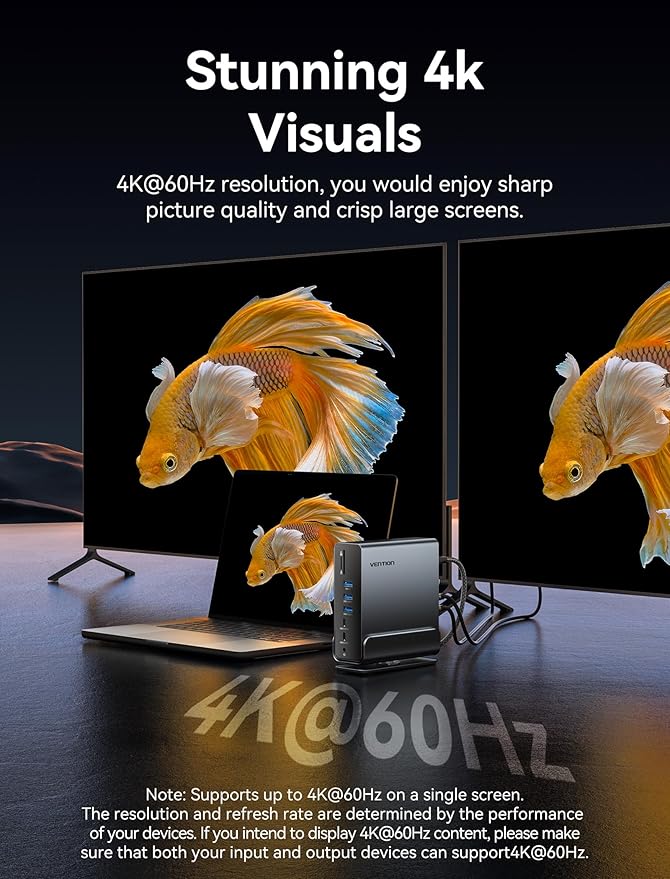 - 16 IN 1 USB C Docking Station: VENTION laptop docking station features 2×4K@60Hz HDMI Ports, 4K@60Hz DP Port, 10Gbps USB C Port, 2x10Gbps USB A Ports, USB C Port, USB 3.0 Ports, 2xUSB 2.0 Ports, 100W Power Delivery (PD) Port, 3.5mm Audio Port, SD/TF Reader, PC Host Port and RJ45 Gigabit Ethernet, catering to all your daily needs