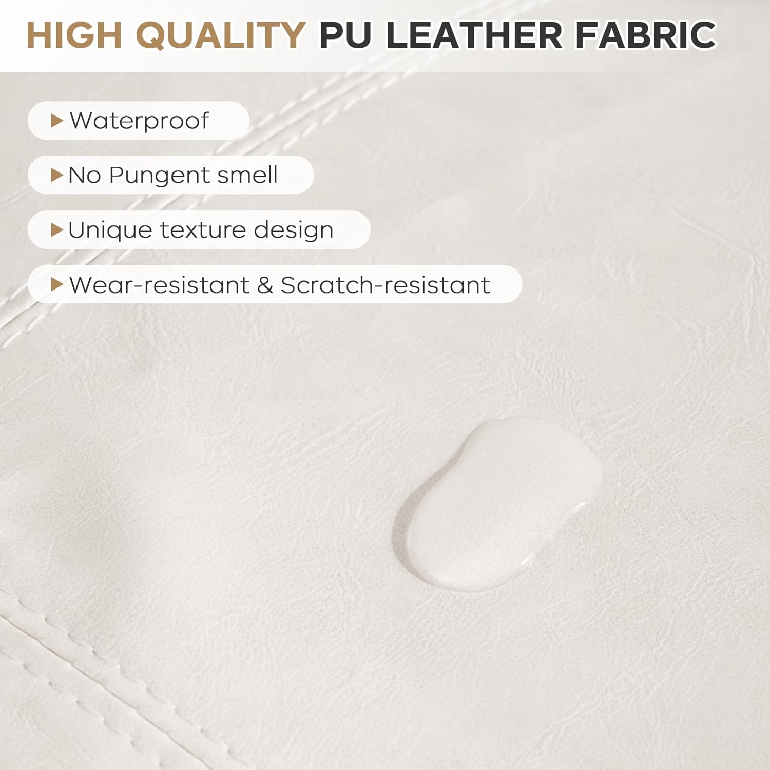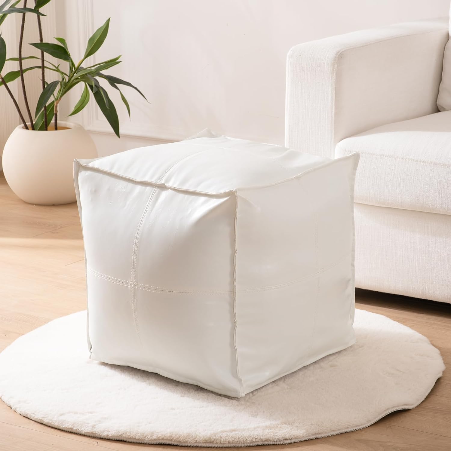 Unstuffed Pouf Ottoman Cover, 17.7x17.7 inch Faux Leather Moroccan Poofy Ottomans Cover, footrest Square White Footstool with Storage Waterproof Easy Cleaning for Living Room (Only Cover No Filler)