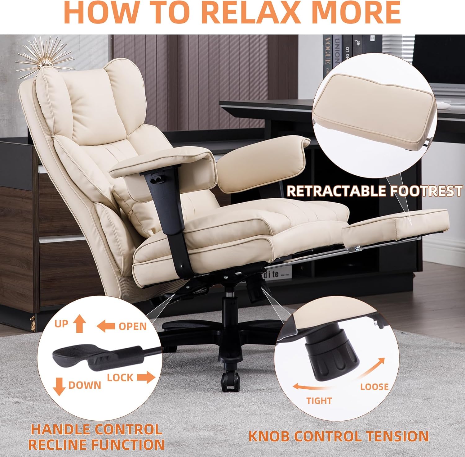 Big and Tall Office Chair 500lbs Wide Seat Executive Office Desk Chair High-Back Office Task Chair with Foot Rest, Ergonomic Lumbar Support Computer Office Chairs for Heavy People(Beige)