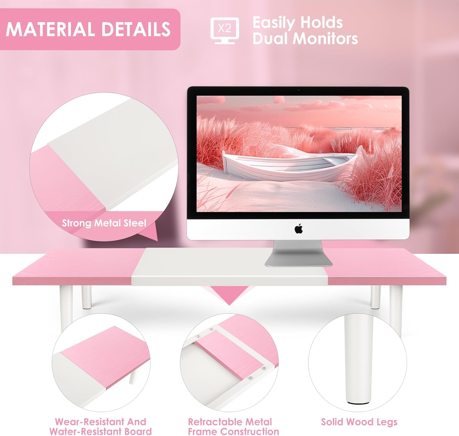 - STURDY STABLE DESK SHELF:Computer monitor stand for desk 2 screens is made of durable and scratch-resistant and water-resistant sliding wood and adjustable metal plate,which is heavy duty enough to load about 70lbs, no sagging or wobbling trouble at all. 4 strong wood legs design make sure the stability of double monitor riser, you don't have to worry about collapsing or shaking during use.