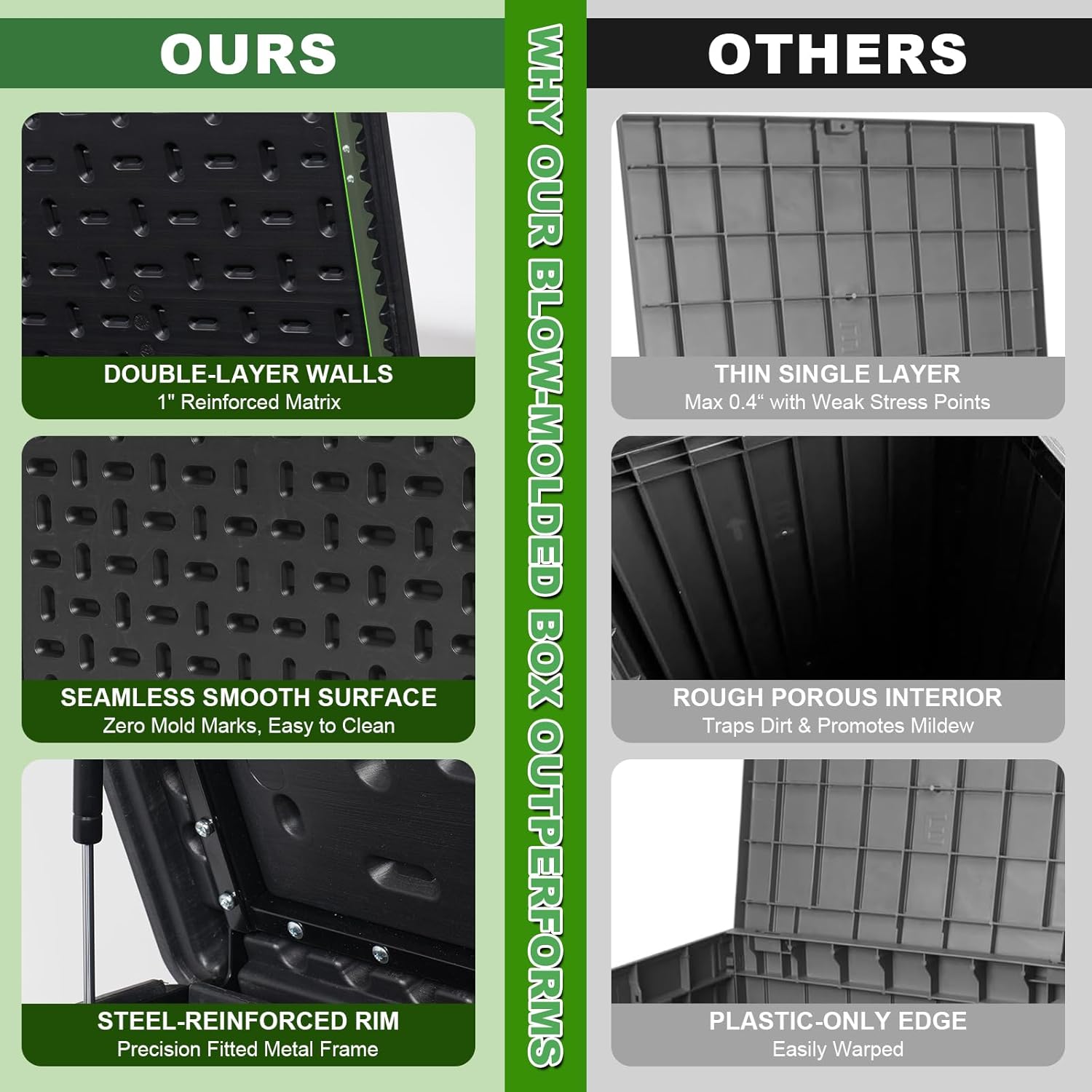 - Massive 260-Gallon Capacity: Designed as a storage box for outdoor furniture covers, this extra-large unit holds bulky items like patio cushions, grilling tools, and winter gear. Its spacious interior maximizes your backyard, garage, or balcony storage without clutter.