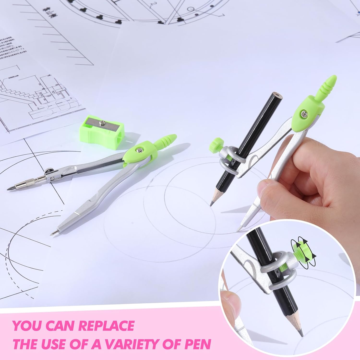 - Package Includes: the geometry set includes 2 compasses, 2 triangles, 1 ruler, 1 protractor and 1 pencil, 1 eraser, 1 sharpener, and 1 box of pencil lead refill, ensuring that you have all the tools you need for precise geometry calculations