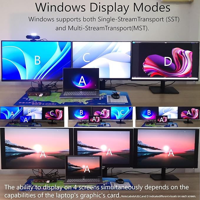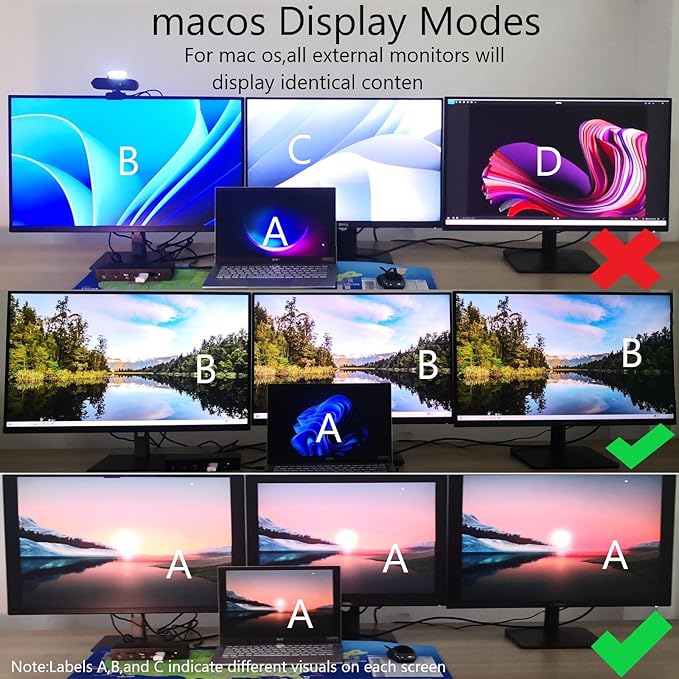 - Display Information: macOS and iPadOS only support Single-Stream Transport (SST) mode, which means all connected monitors will show the same content.