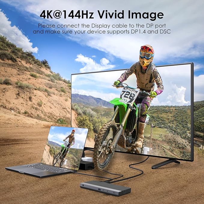 - Triple Display or Dual Monitor: Equipped with dual DP and one HDMI port,Single DP can up to 4K@144Hz under DP1.4 source. Resolution will be 4K@60Hz if two monitors play simultaneously.Connect up to three monitors simultaneously.it perfect for expanding multiple displays for meetings, presentations, stock chart analysis, programming, and more.(Pls Not: Please make sure that the USB-C port on the host laptop supports video output)
