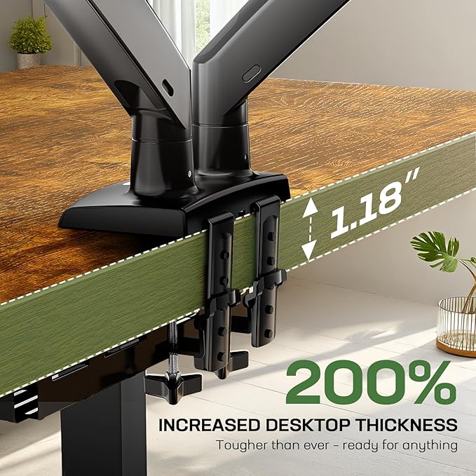 - Deeper & Thicker Desktop: This stand up desk is 6" deeper and 200% thicker than standard standing desks, providing a tougher, more durable surface that resists warping and can handle heavier items. Enjoy extra space for more monitors, laptopsand essentials with easier multitasking and a cleaner, more efficient workspace