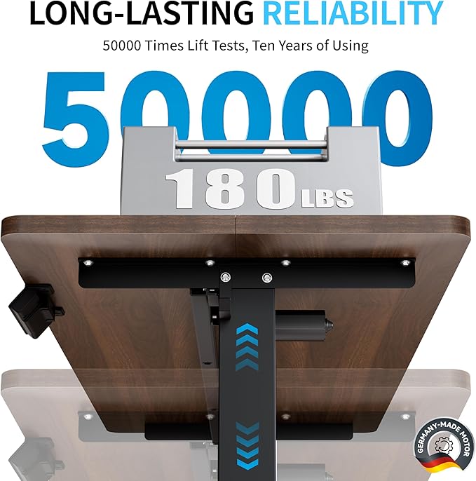 - Stable & Sturdy Design: This electric standing desk boasts a powerful motor that lifts at 0.8" per second and has been rigorously tested 20,000 times. This office desk cold-rolled steel frame supports up to 132 lbs, with a recommended daily use capacity of 180 lbs