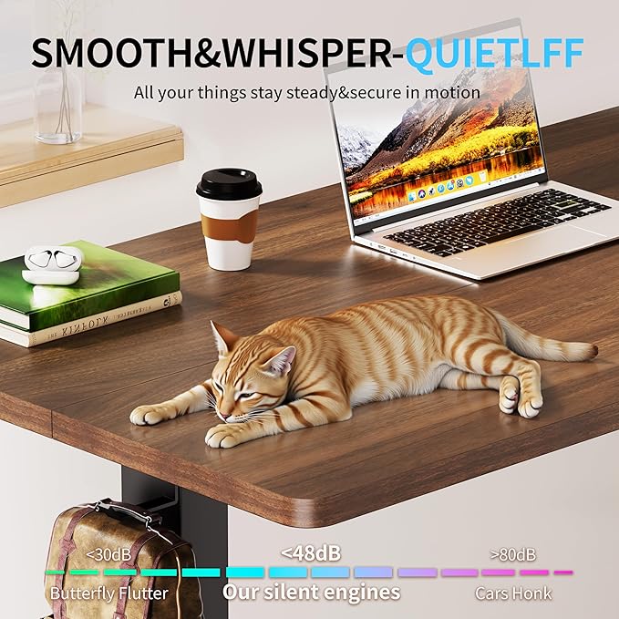 - Height Adjust Smoothly: This adjustable standing desk with 3 memory presets, you can easily save and recall 3 customizable heights for sitting and standing with a single button press. The escritorio adjusts smoothly from 27.5" to 45.7" with low noise <48 dB. So that won't influence families and pet rest