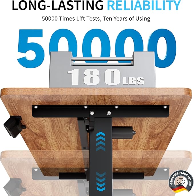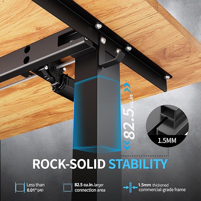 - Stable & Sturdy Design: This electric standing desk boasts a powerful motor that lifts at 0.8" per second and has been rigorously tested 20,000 times. This office desk cold-rolled steel frame supports up to 132 lbs, with a recommended daily use capacity of 180 lbs