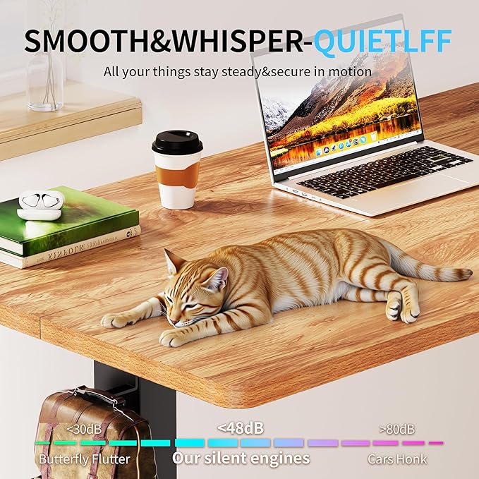 - Height Adjust Smoothly: This adjustable standing desk with 3 memory presets, you can easily save and recall 3 customizable heights for sitting and standing with a single button press. The escritorio adjusts smoothly from 27.5" to 45.7" with low noise <48 dB. So that won't influence families and pet rest