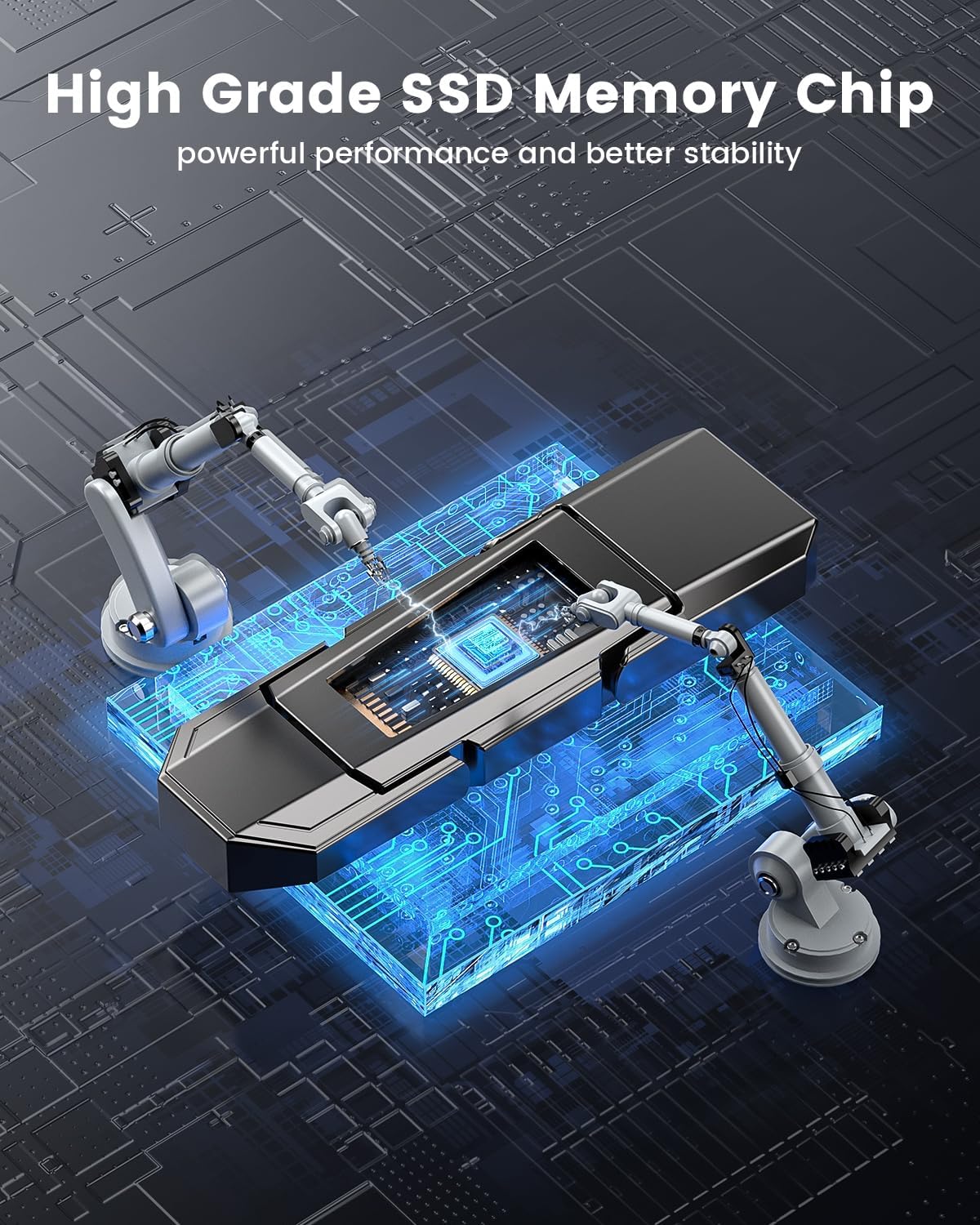 - Durable and Reliable: Adopting high-grade tlc memory particles combined with sturdy zinc alloy casing, the external ssd usb drive is drop-proof. The double-head cover design can better protect the interfaces from damage and well safeguard your important data.