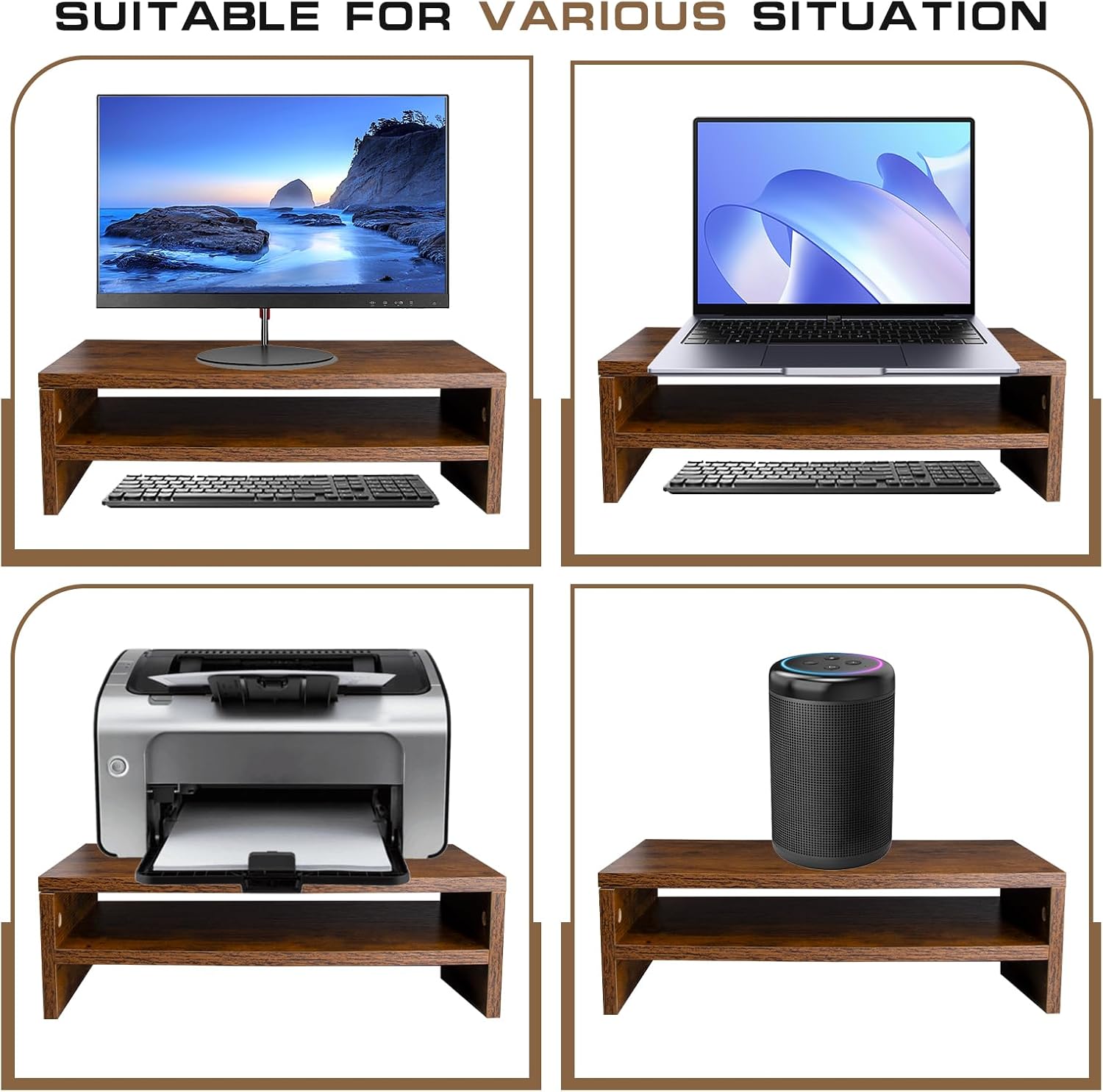Monitor Stand Riser, 2 Tier Computer Stand, Desk Organizers and Accessories, Desktop Shelf with Storage for TV Screen PC Printer (Rust Brown-18.9inch)