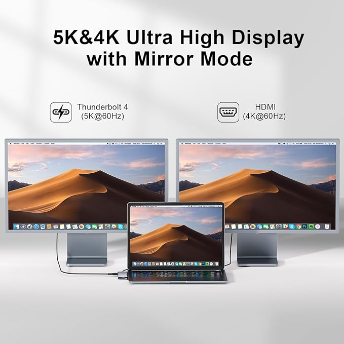 - Ultra-Fast Charging & Lightning Data: The Thunderbolt 4 port delivers blazing-fast 100W charging, 40Gbps data transfer, and stunning 5K@60Hz video output. Effortlessly power your devices while transferring large files or streaming high-resolution content—all at once