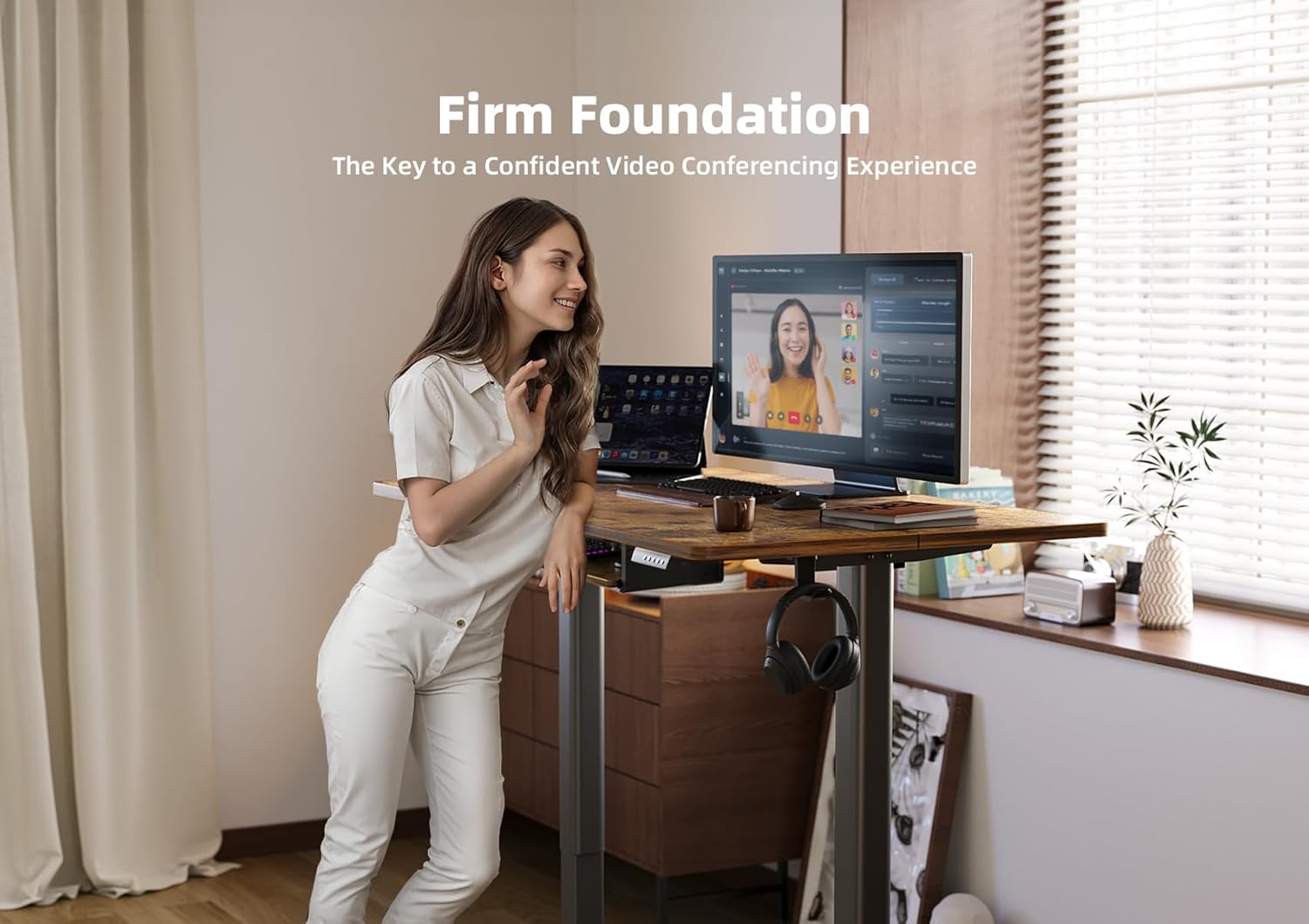 YDN Standing Desk with Keyboard Tray, 55 Inch Height Adjustable Desk, Brown Stand Up Desks for Home and Office, 55inch Rustic Brown
