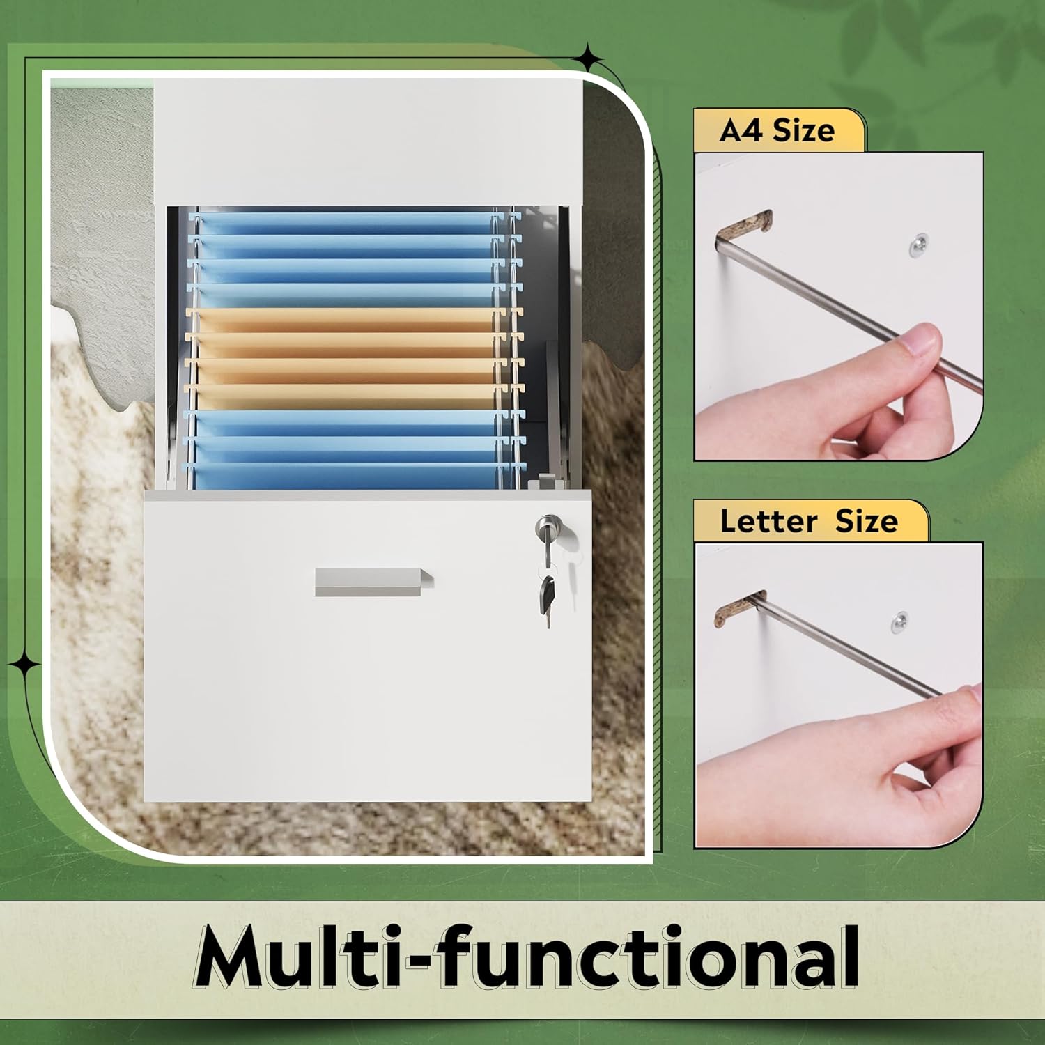 - 【Optimize Space Utilization】Maximize your floor space by placing this cabinet next to your desk, sofa, or bed. The file cabinet is a smart storage solution for maintaining a neat and organized environment, even in compact spaces.