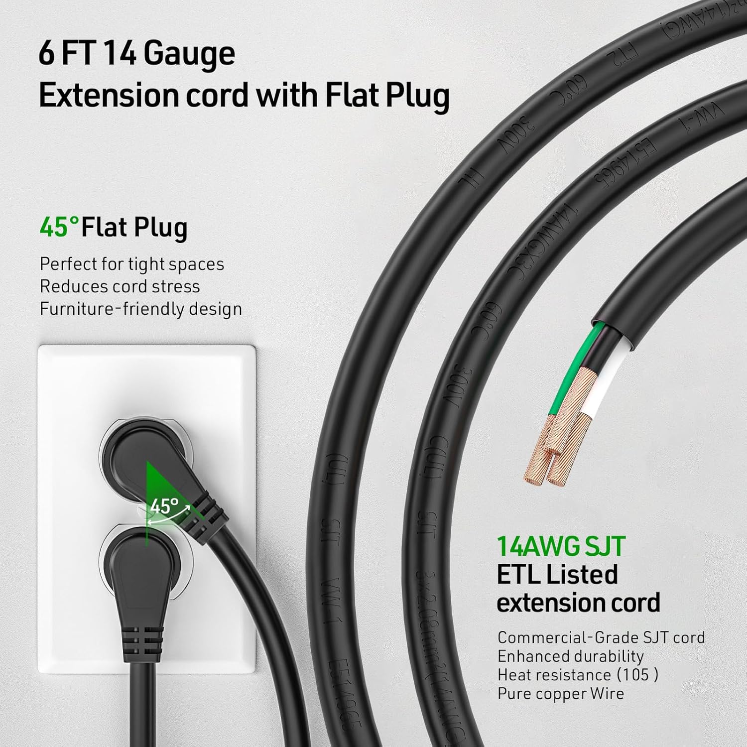 - [Space-Optimized Performance] - Engineered thin at just 1.6" (4cm) yet packs 8 generously spaced outlets (1.77in gap) to accommodate bulky adapters. Features a 6ft 14AWG reinforced cord with low-profile plug and integrated cable tie for clutter-free deployment.