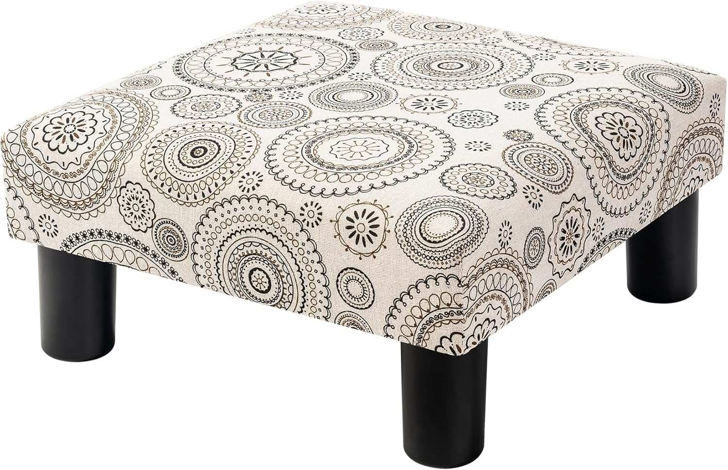 Joveco Small Foot Rest Stool Ottoman, Square Upholstered Fabric Footstool for Couch, Under Desk, Office, Living Room, Mandala Beige