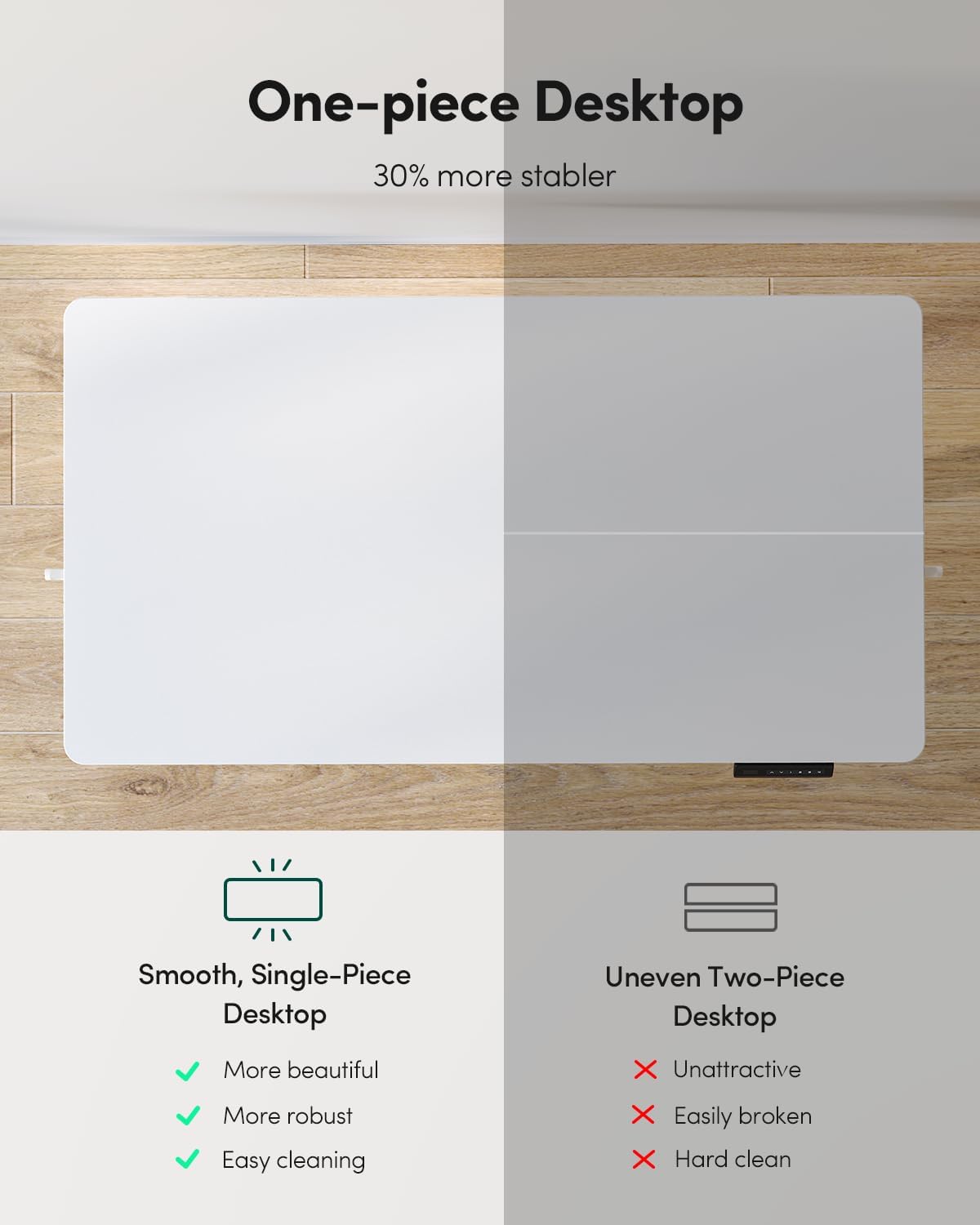 - Seamless One-Piece Design: Fezibo adjustable standing desk features a smooth, one-piece desk surface without visible seams. Unlike other models with joined panels, this seamless design offers 30% enhanced stability to provide a solid foundation for your equipment.