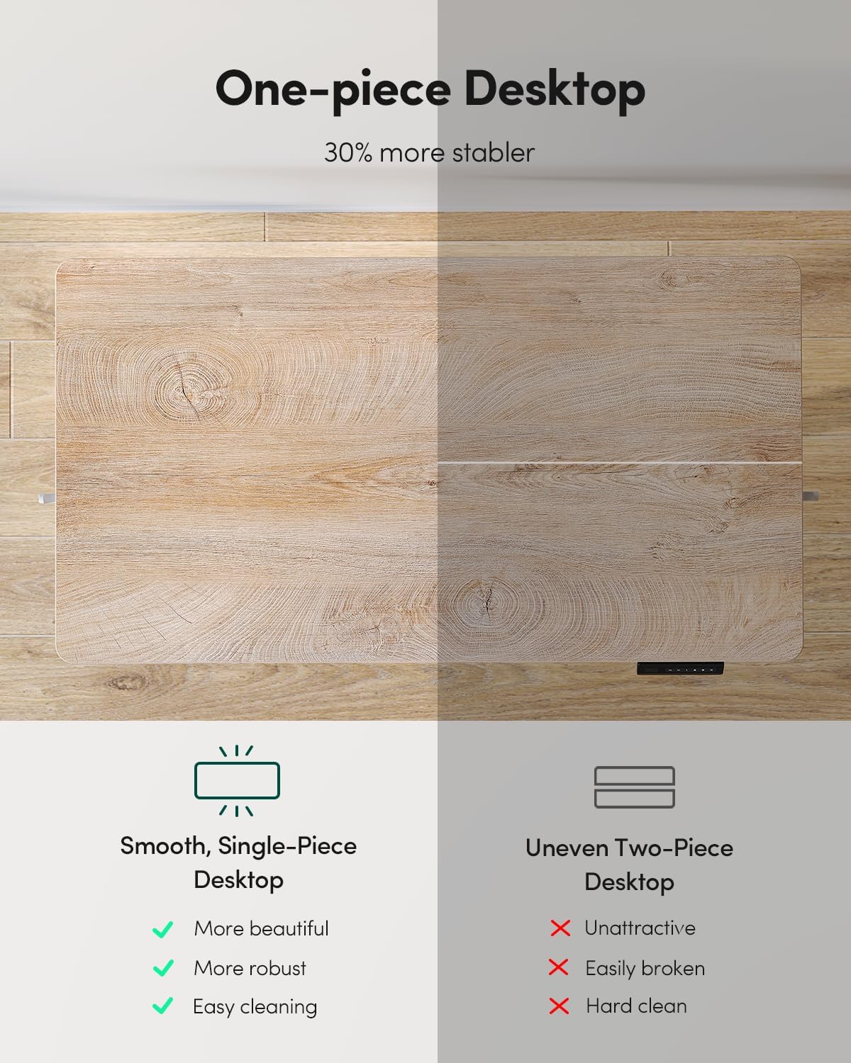 - Simplified Assembly: The Fezibo electric sit-stand desk includes detailed instructions for streamlined installation. One-piece desktop requires less steps than joined desktops to save time and effort. Please contact our support team if you have questions about assembly or product selection.
