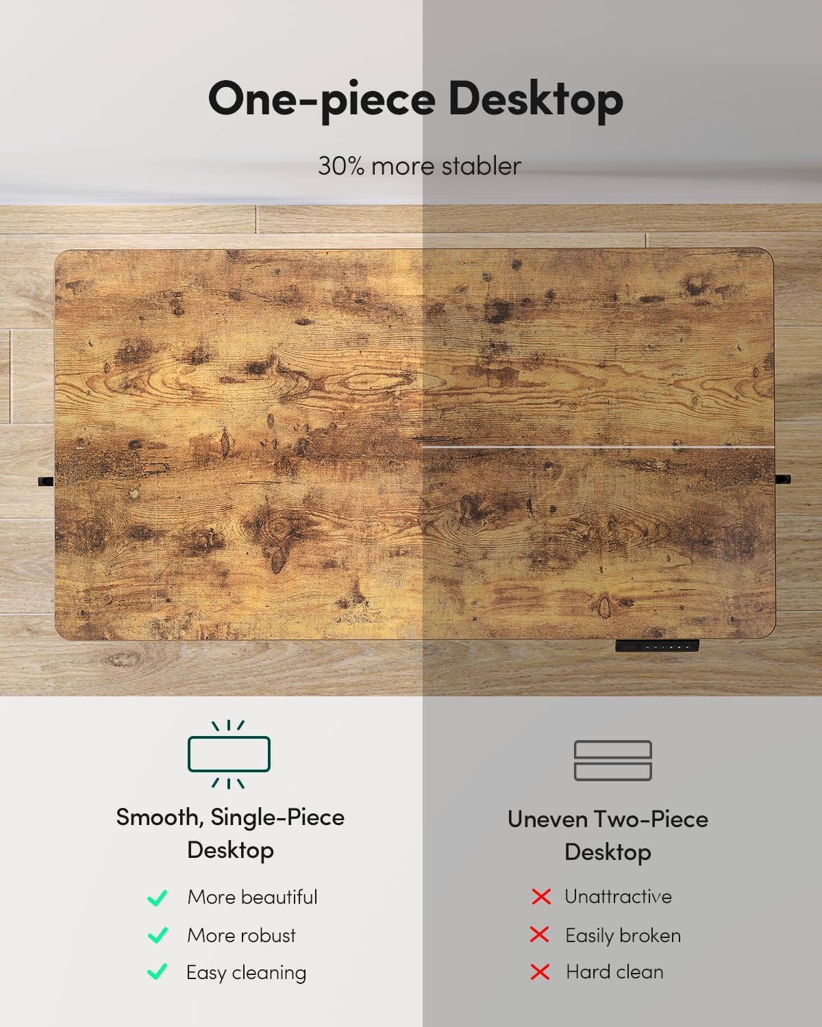- Simplified Assembly: The Fezibo electric sit-stand desk includes detailed instructions for streamlined installation. One-piece desktop requires less steps than joined desktops to save time and effort. Please contact our support team if you have questions about assembly or product selection.