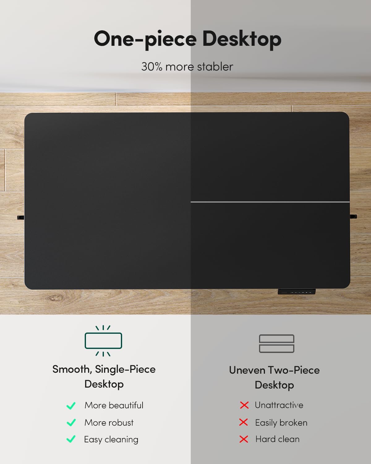 - Seamless One-Piece Design: Fezibo adjustable standing desk features a smooth, one-piece desk surface without visible seams. Unlike other models with joined panels, this seamless design offers 30% enhanced stability to provide a solid foundation for your equipment.