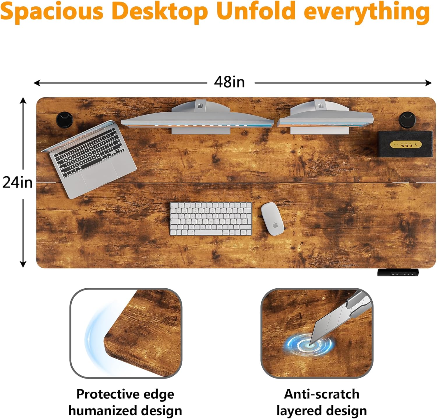 Himimi Electric Standing Desk 48 x 24 inch for Home Office,Sit-Stand Adjustable Desk with Memory Presets,Height Adjustable Desk for Gaming/Working,Free Hook, Lockable Wheels,Brown