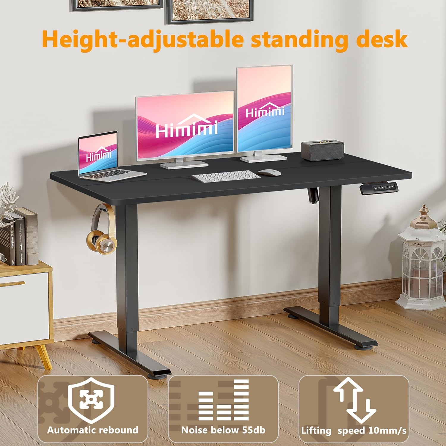 Himimi Electric Standing Desk 48 x 24 inch for Home Office,Sit-Stand Adjustable Desk with Memory Presets,Height Adjustable Desk for Gaming/Working,Free Hook, Lockable Wheels,Black