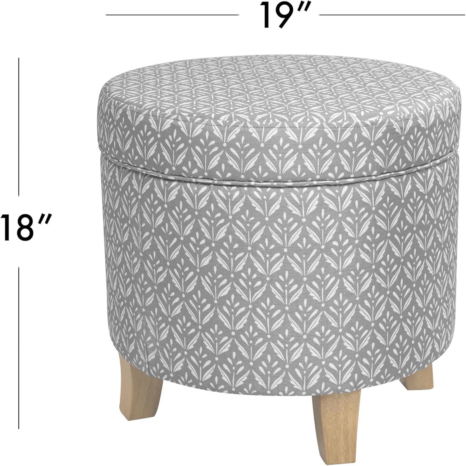 HomePop Upholstered Round Storage Ottoman|Homepop Home Décor|Upholstered Round Foot Rest Ottoman - Light Grey Print